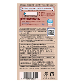 | 注意事項 : | ※コンドームの使用は、1個につき1回限りです。その都度、新しいコンドームをご使用ください。 ※コンドームには爪や歯、その他硬いものに強く触れないようにしてください。 ※その時のキズが使用中破れの原因となります。 ※天然ゴムラテックスを素材にしているコンドームの使用で、かゆみ、発赤、じんましん、むくみ、発熱、呼吸困難、喘息様症状、血圧低下、ショックなどのアレルギー性症状をまれに起こすことがあります。このような症状を起こした場合には、直ちに使用を中止し、医師に相談してください。 ※コンドームは男性のペニスに装着し、女性の膣内に挿入する性行為に適用するよう設計されています。これ以外の使用は破れる危険があります。 ※エイズを含む性感染症は、接触感染ですのでコンドームは必ず性器接触の前に装着してください。精子は射精時のみならず、射精前後でも流出します。 ※引き続き性行為を行うときは、特にご注意ください。 ※膣内に挿入する坐剤、外部性器に塗布する軟膏などの医薬品やベビーオイル、マーガリン、ローション、ハンドクリームなどと接触すると、コンドームが劣化し、破れる危険があります。 ※コンドームの使用時には、これらと接触しないよう注意してください。 ※使用期限を過ぎたコンドームは破れの危険がありますので、使用しないでください。 下記の場所に保管しないでください。 a) 直射日光のあたる場所 b) 高温多湿の場所 c) 防虫剤などの揮発性物質のある場所 購入時の包装に入れたまま保管し、その都度、取り出してください。 個別包装のまま携帯しないでください。 |